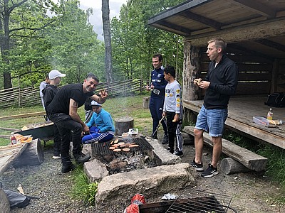 Stor uppslutning av både spelare och ledare, glada miner och mycket skratt, härliga insatser i 4-kampen, ett eget initiativ att rulla rör modell större nedför slalombacke (?!) samt oundvikligen en och annan bränd korv.